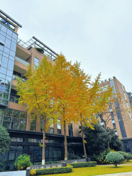 于步履匆匆的日常中,在熟悉的办公环境旁,银杏以最浓郁的金色装点着季节,微风徐来,叶片如折扇翩跹,为理性严谨的科技空间铺上温暖的底色。“满地翻黄银杏叶,忽惊天地告成功”---这飞舞的金黄,恰似对园区企业一年来技术突破与成果丰硕的无声礼赞。