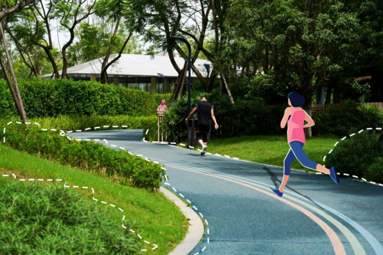 晨跑→湖边|午休→绿道|下班→公园
